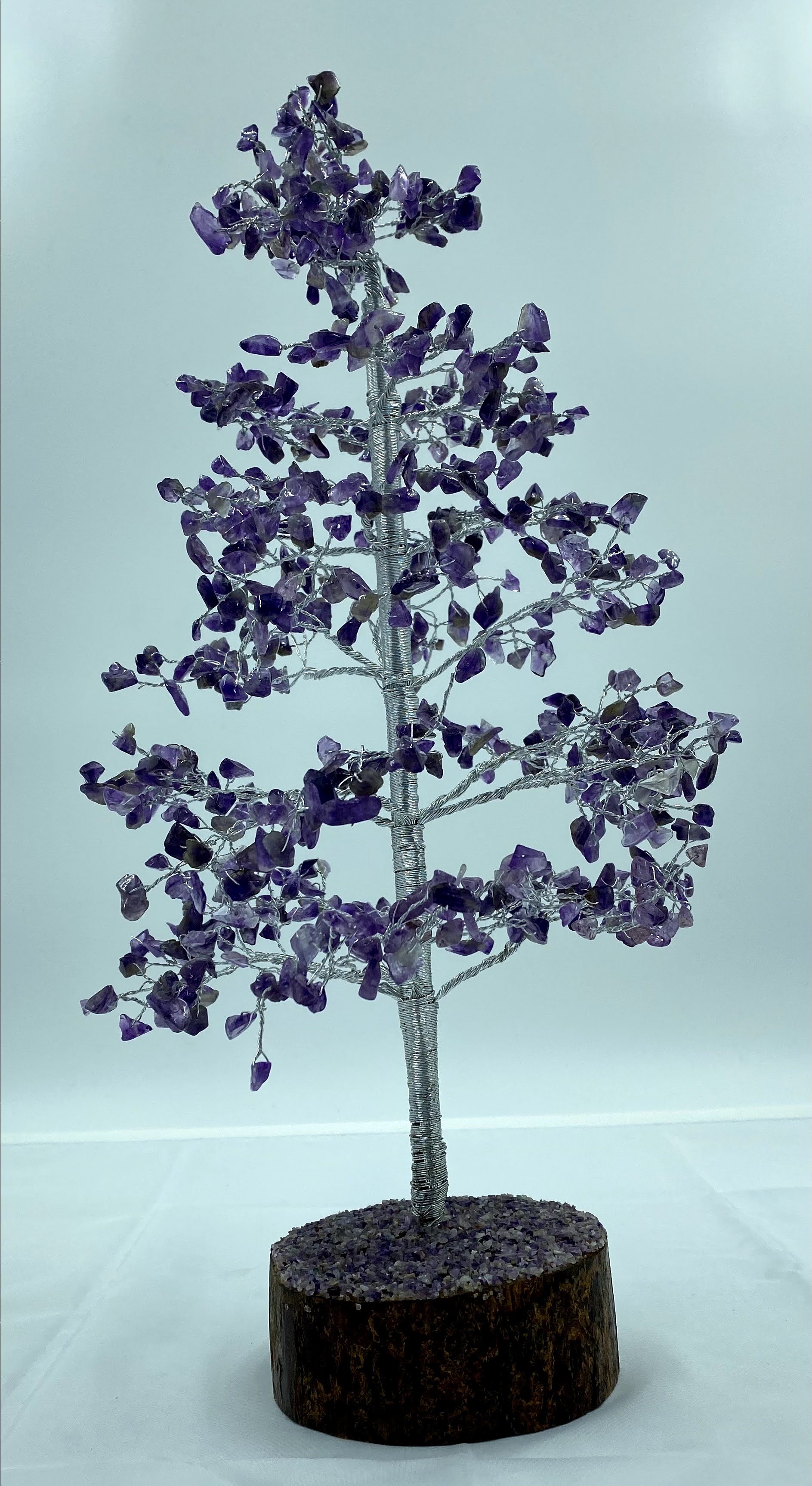 - This Beautiful Natural Gemstone Tree (Silver Wire) Handmade in India. Having approx. 700 Gemstone chips. Size approx. 16 inches in height (when open the branches of the tree). The wooden base is approximately 5 to 6 Inch Total Weight 750 grams approx. Due to the natural creation of crystal, please expect some slight variation in terms of size, color, texture, etc.