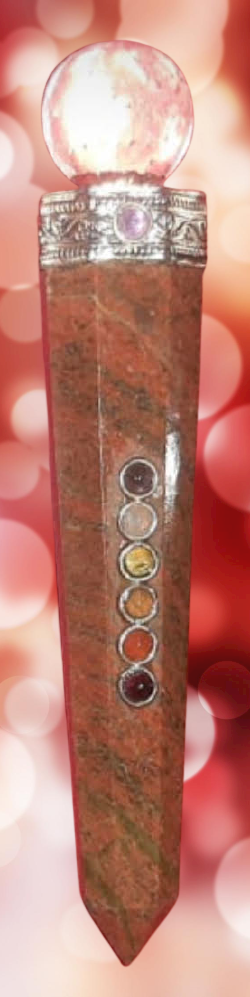 - This Beautiful Unakite Agate Healing Wand With Seven Chakra.