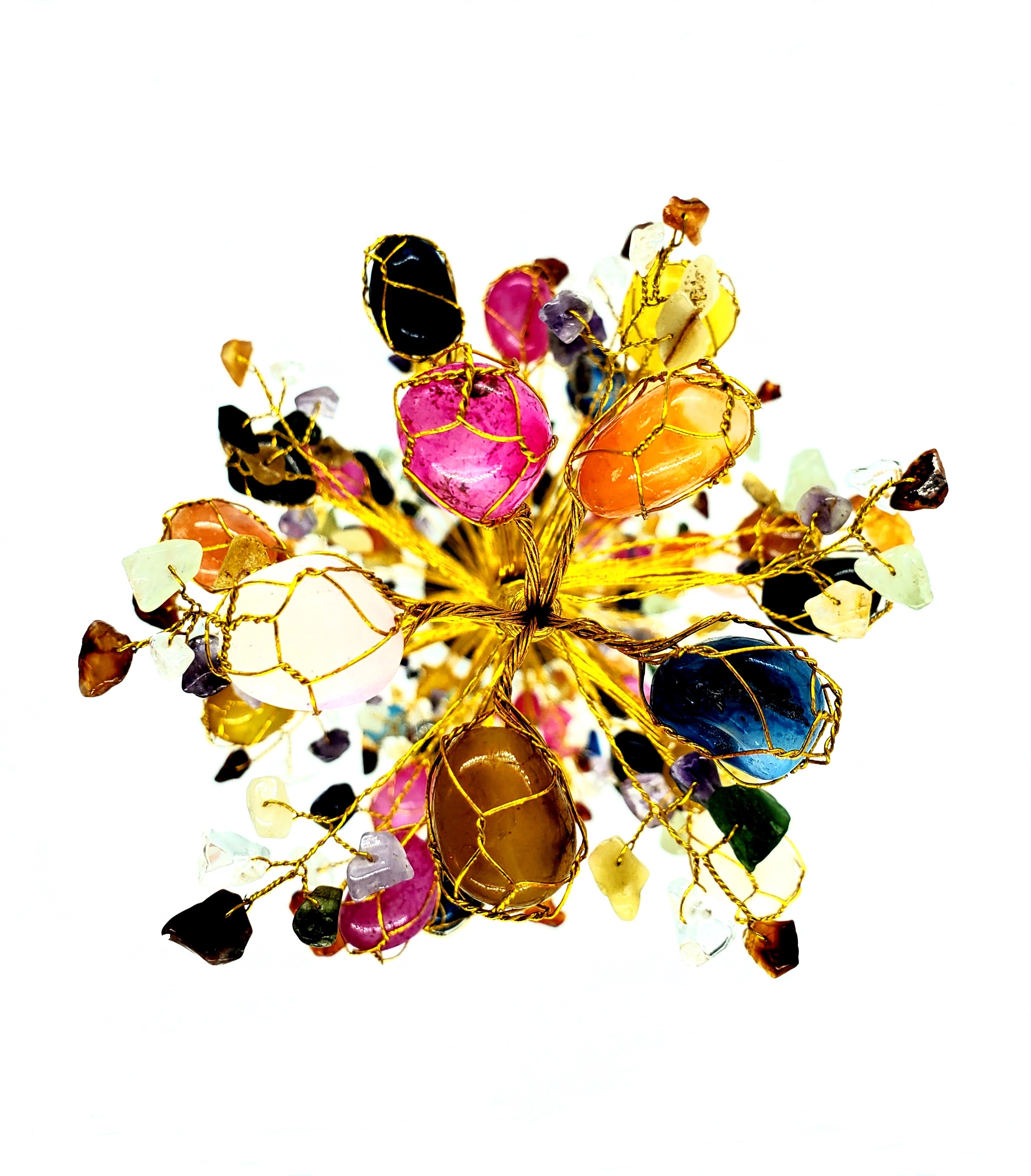 - This Beautiful Natural Gemstone Tree (Silver Wire) Handmade in India. Having approx. 70 Gemstone Pebbles and approx. 300 chips. Size approx. 28 inches in height (when open the leaves of the tree). The wooden base is approximately 3.5-4.5 Inch Total Weight range is 1000 to 1150 grams approx. Due to the natural creation of crystal, please expect some slight variation in terms of size, color, texture, etc.