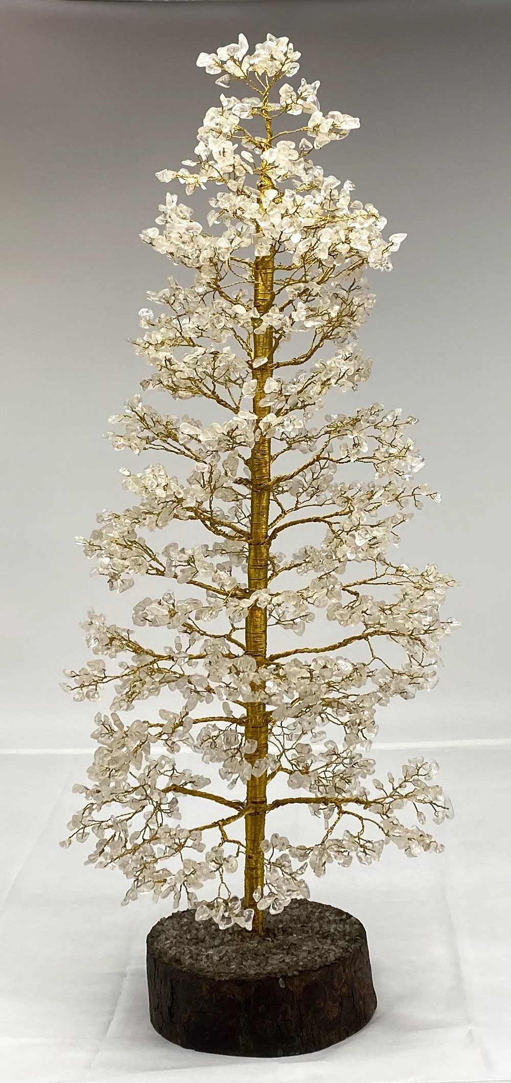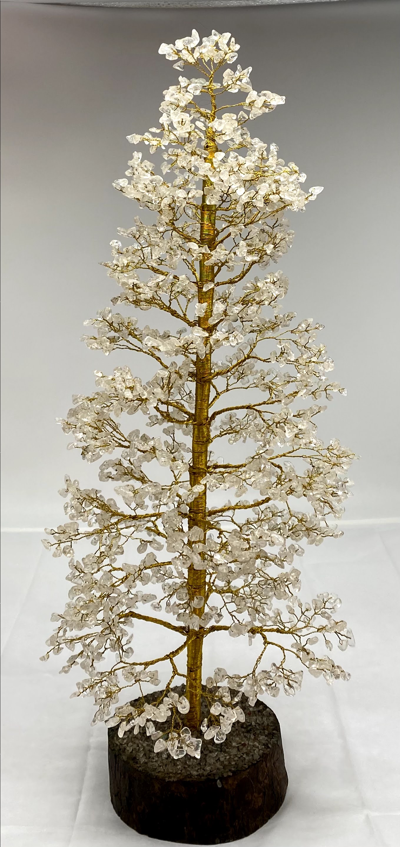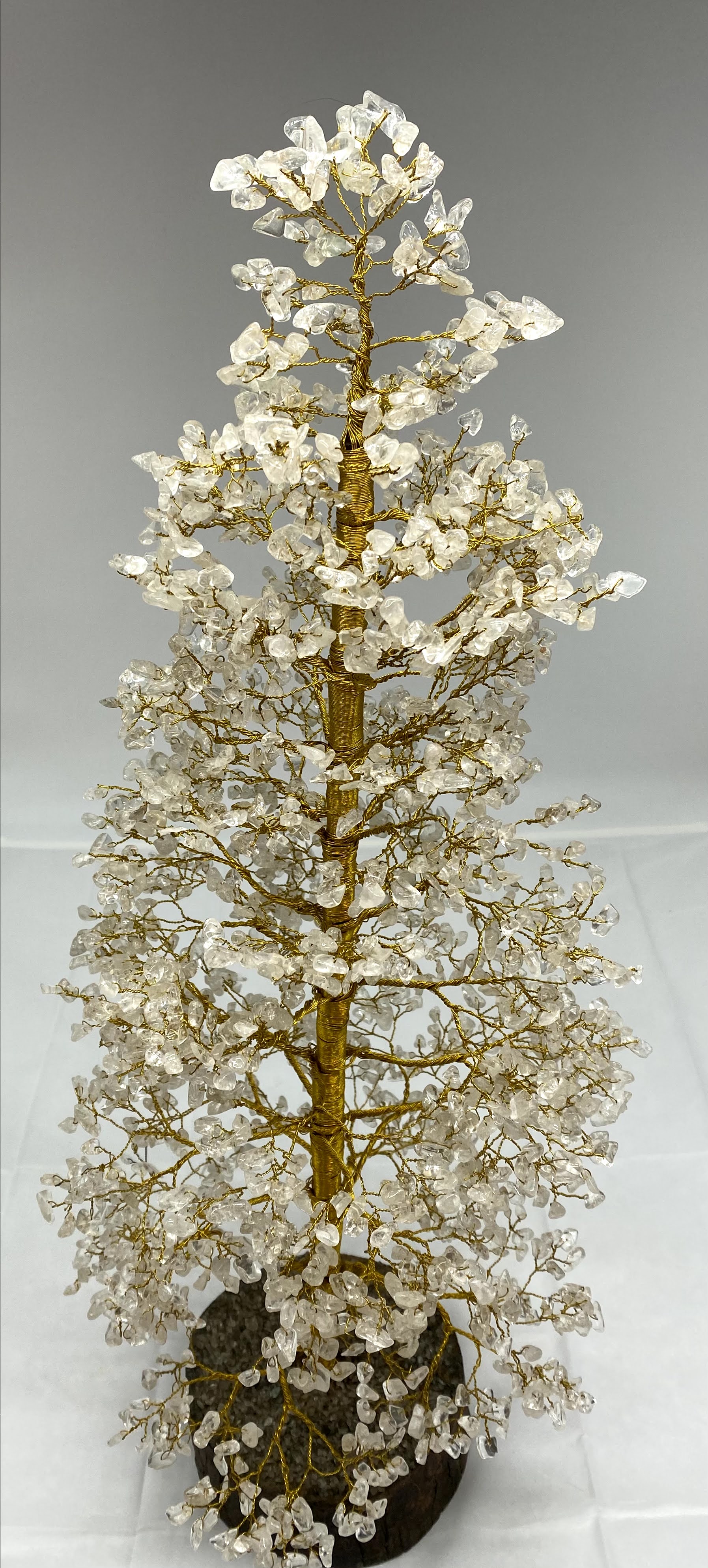 - This Beautiful Natural Gemstone Tree (Golden Wire) Handmade in India. Having approx. 2000 Gemstone chips. Size approx. 28 inches in height (when open the branches of the tree). The wooden base is approximately 5 to 6 Inch Total Weight 2 kilograms approx. Due to the natural creation of crystal, please expect some slight variation in terms of size, color, texture, etc.