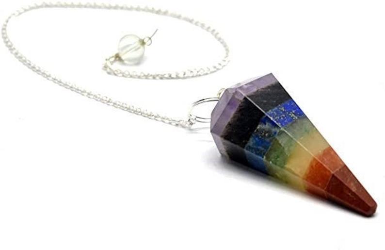 7-Chakra Multifaceted w/ Crystal Ball Chain Pendulum