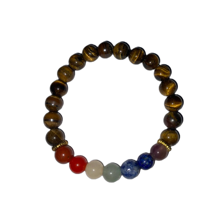 - You will get ONE Tiger w/ Chakra Gemstone Bracelet: High-quality natural 8 mm Tiger w/ Chakra Gemstone Bracelet.