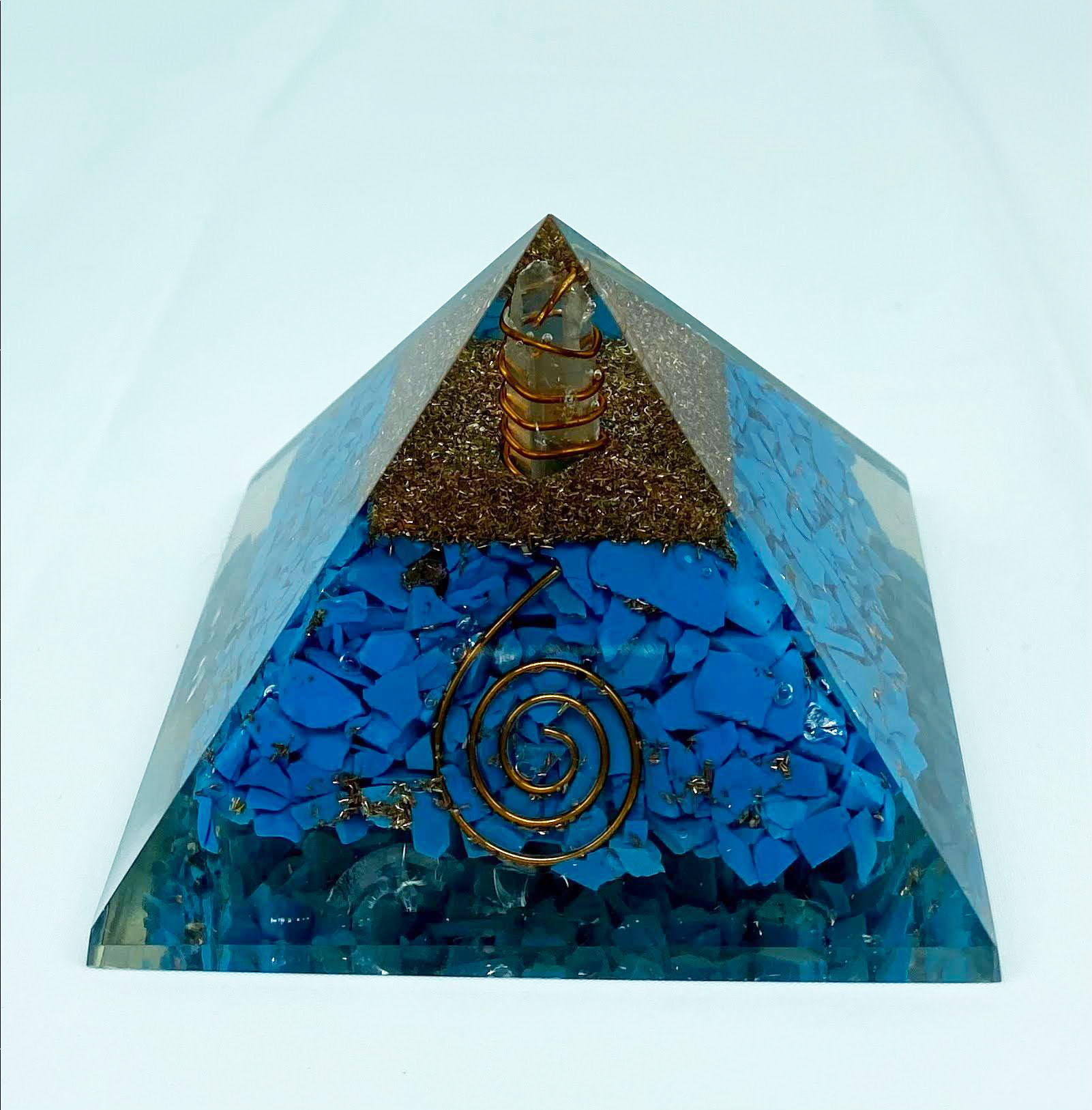 - Energy Generator Blue Howlite Reiki Orgonite Pyramid Specimen Figurine Home Decor
