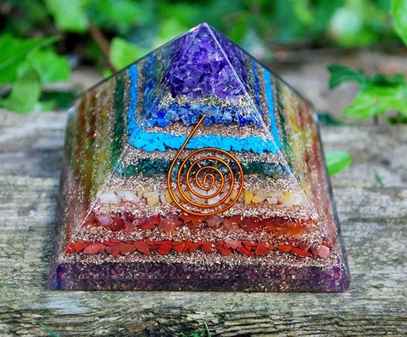 - Energy Generator 7 Chakra Copper Layered Premium Reiki Orgonite Pyramid Specimen Figurine Home Decor