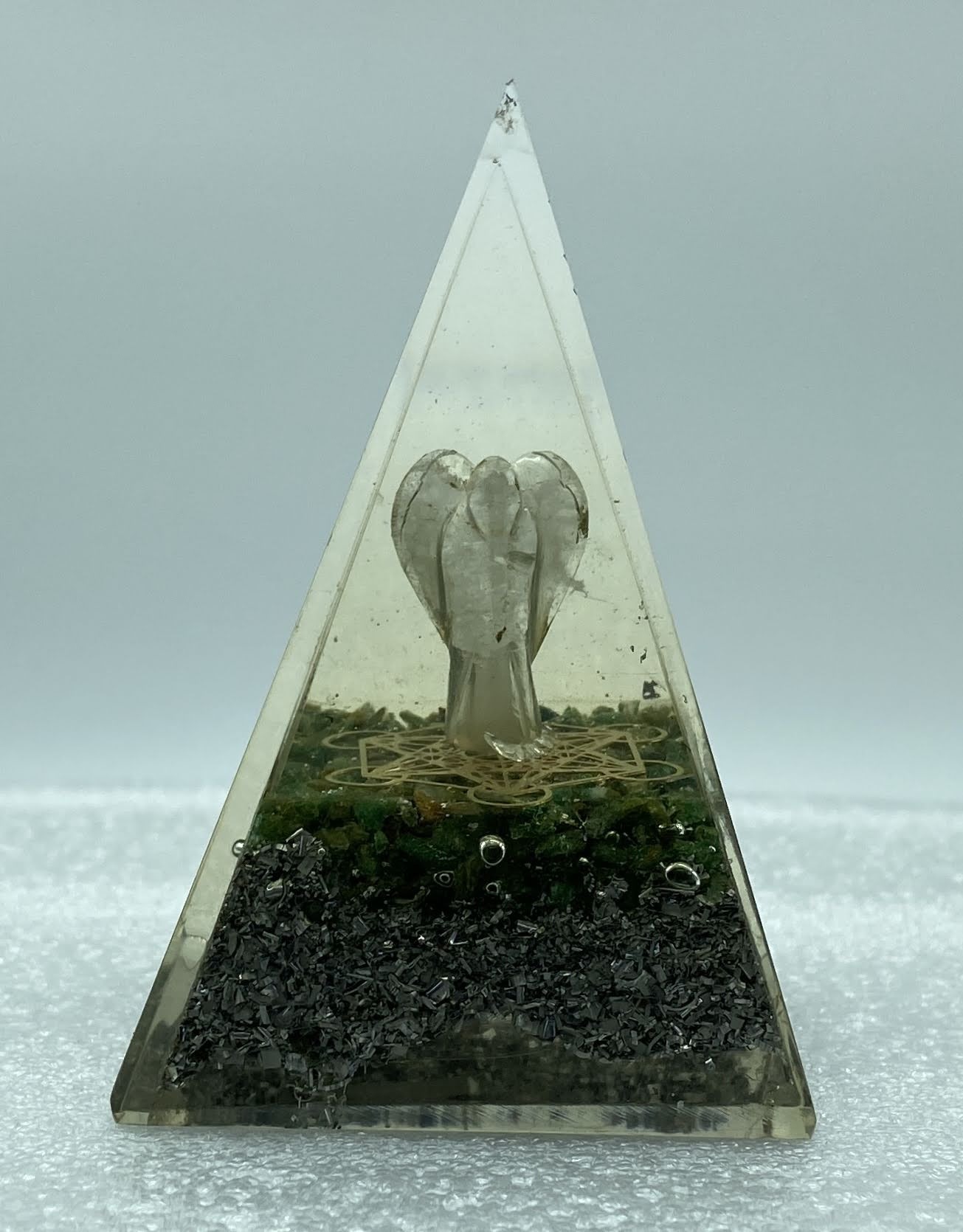 - Energy Generator Nubian Green Jade w Smoky Angel Reiki Orgonite Pyramid Specimen Figurine Home Decor