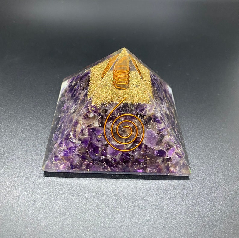 - Energy Generator Amethyst Reiki Orgonite Pyramid Specimen Figurine Home Decor