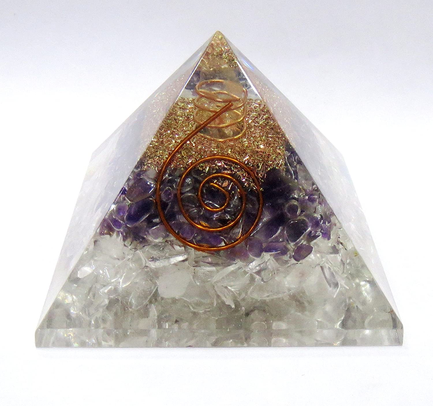 Crystal Quartz Amethyst Orgonite Reiki Pyramid -3 INCH