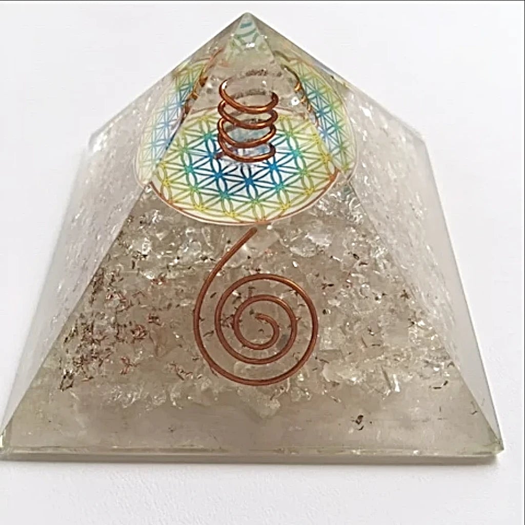 - Energy Generator Crystal Quartz w Logo Reiki Orgonite Pyramid Specimen Figurine Home Decor