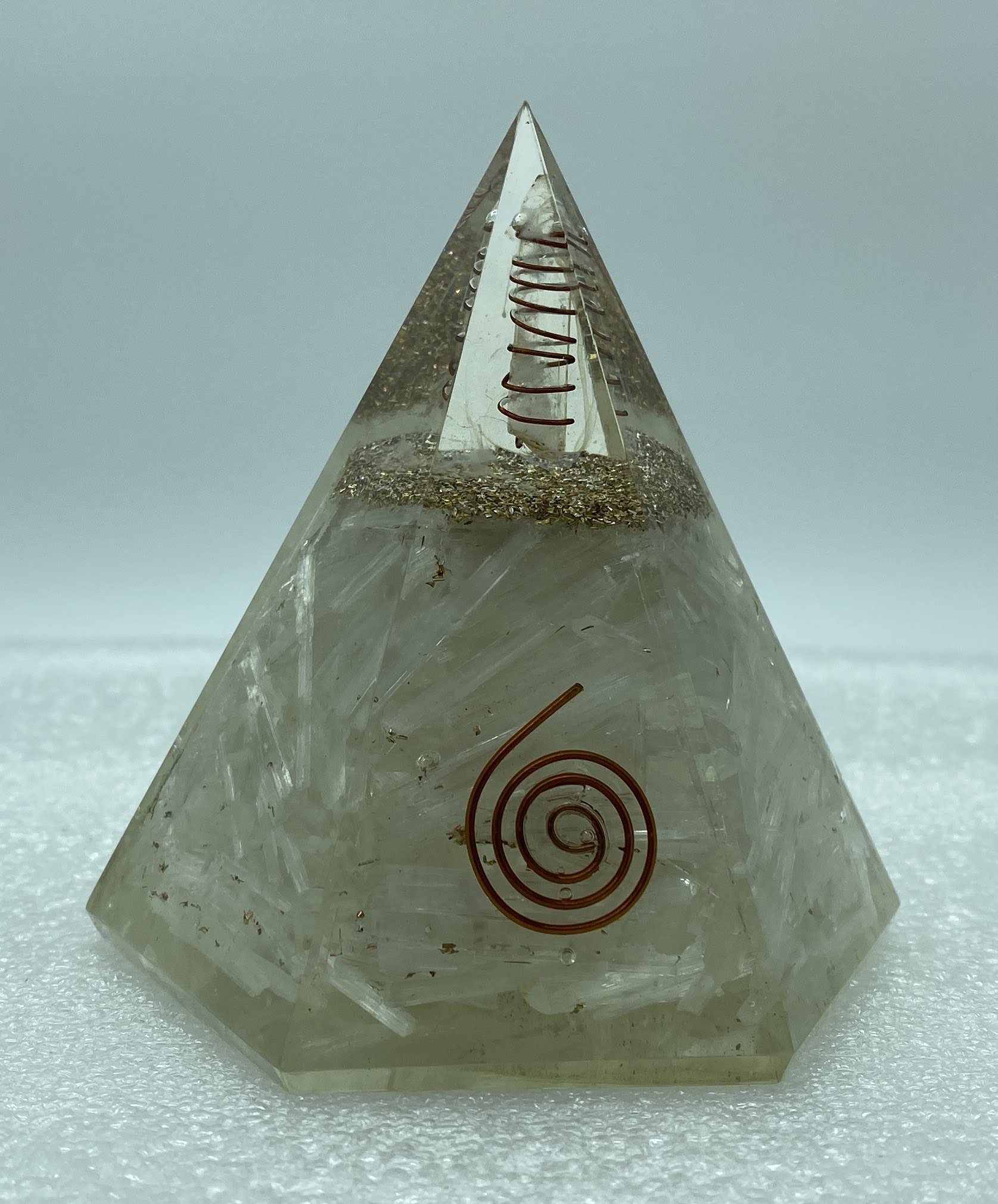6 Faceted Selenite Reiki Orgonite Pyramid - 3 INCH