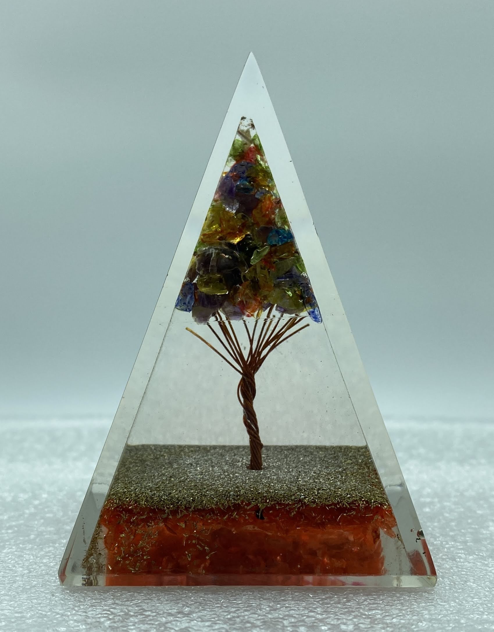 - Energy Generator Nubian Red Carnelian w Multicolore Tree Reiki Orgonite Pyramid Specimen Figurine Home Decor
